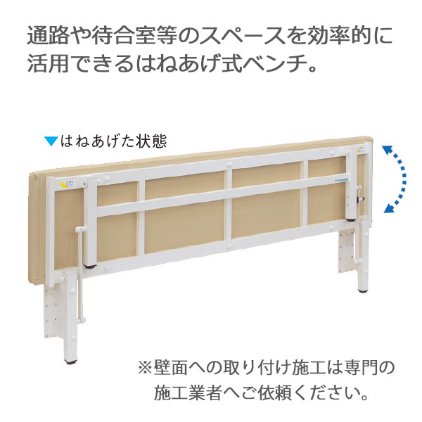 ■通路や待合室のスペースを効率的に活用できる跳ね上げ式のベンチ。