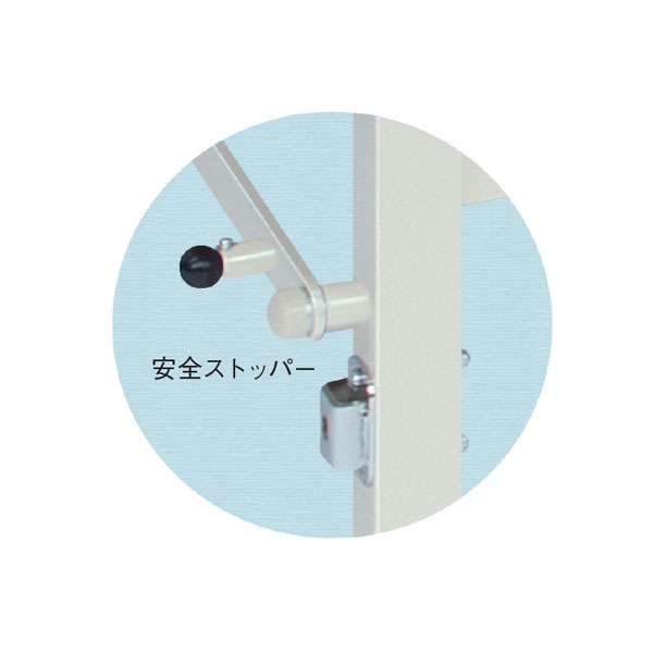 ■女性でも簡単に跳ね上げることが可能な安全ストッパー機能付き構造。