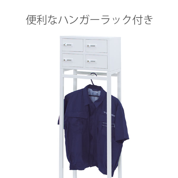 ■ダイヤル錠仕様の4人用貴重品入れロッカー付きの便利なハンガーラック。